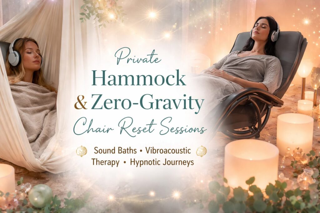 | Hammock Sound Bath Healing Journey | 25 or 50-minute immersive crystal bowl sound experience for stress relief, emotional reset, and energetic harmony. | $60 for 25 mins $120 for 50 mins |